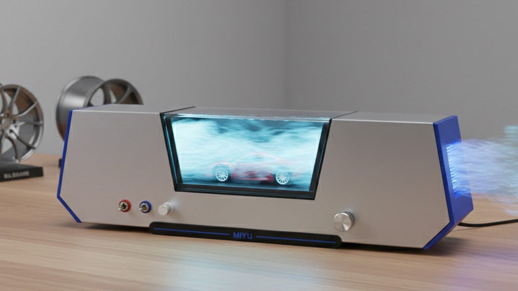 Built from precision aluminium with an inbuilt airflow system and a crystal-clear viewing window. Designed to fit both 1:64 and 1:43 scale models, making it the perfect centrepiece for any car enthusiast desk or collector setup.